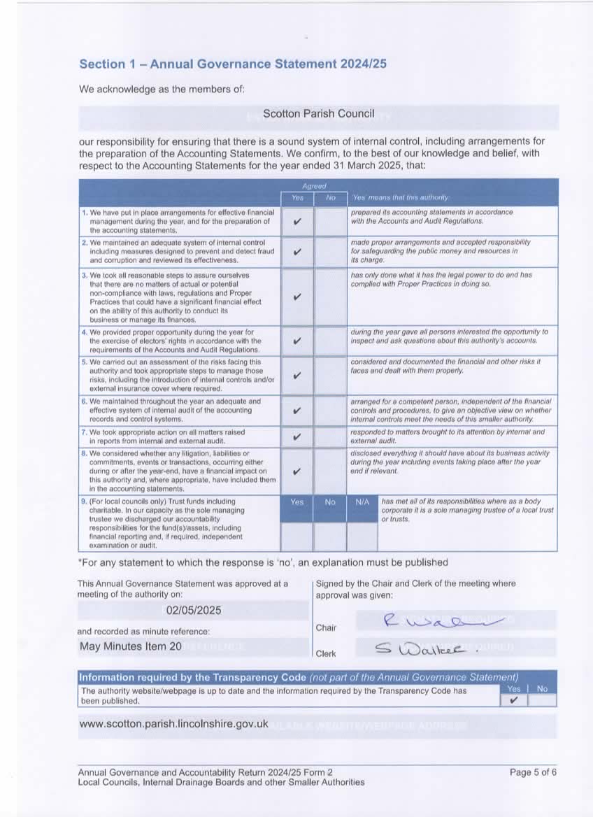 2024-25 AGAR Annual Governance Statement